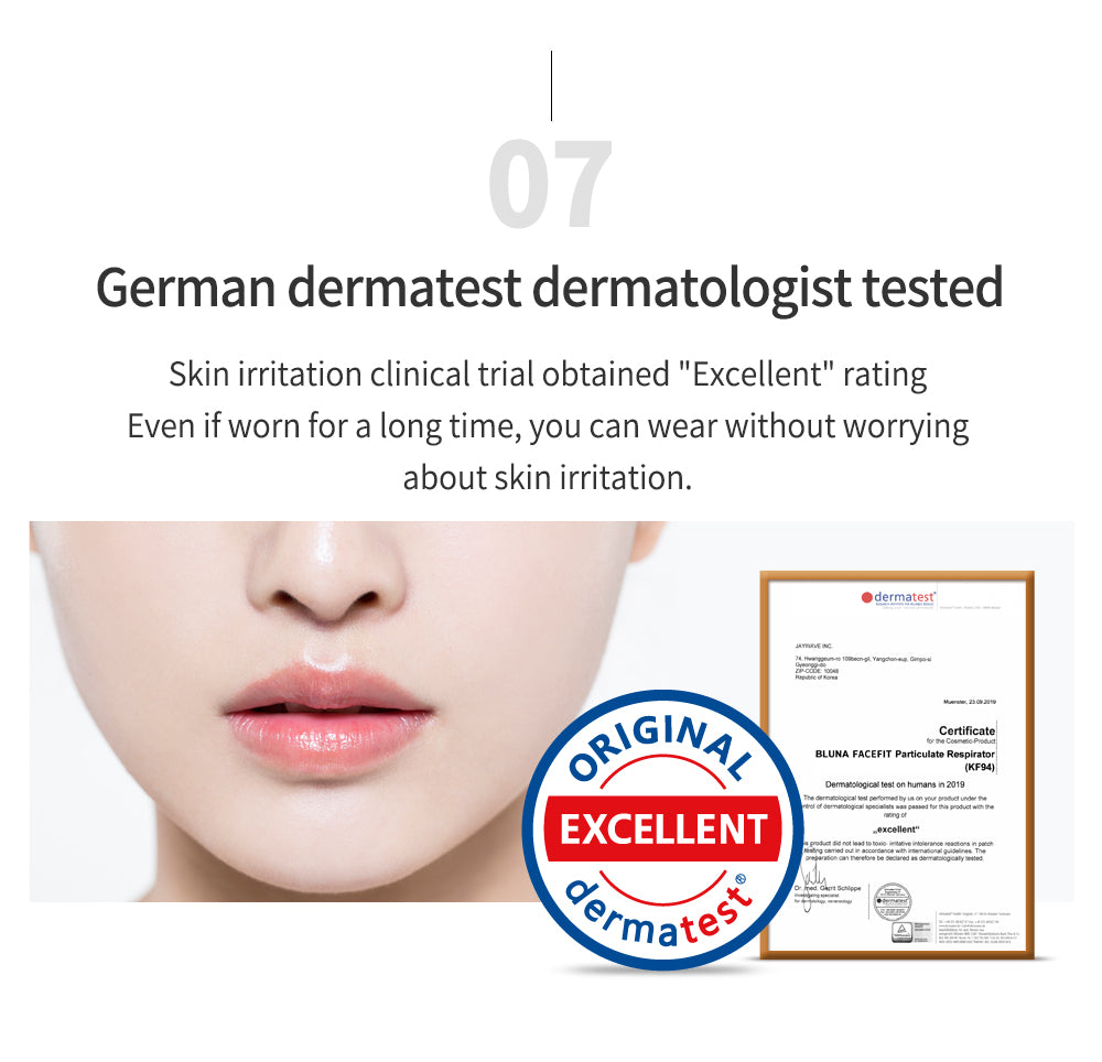 - A obtenu la note « Excellent » lors d'un test dermatologique en Allemagne concernant l'irritation cutanée. Sûr et confortable, même porté pendant de longues heures.