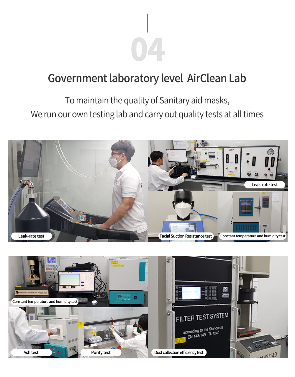 - Testé et obtenu un niveau de qualité élevé par le laboratoire AirClean accrédité par le gouvernement coréen.