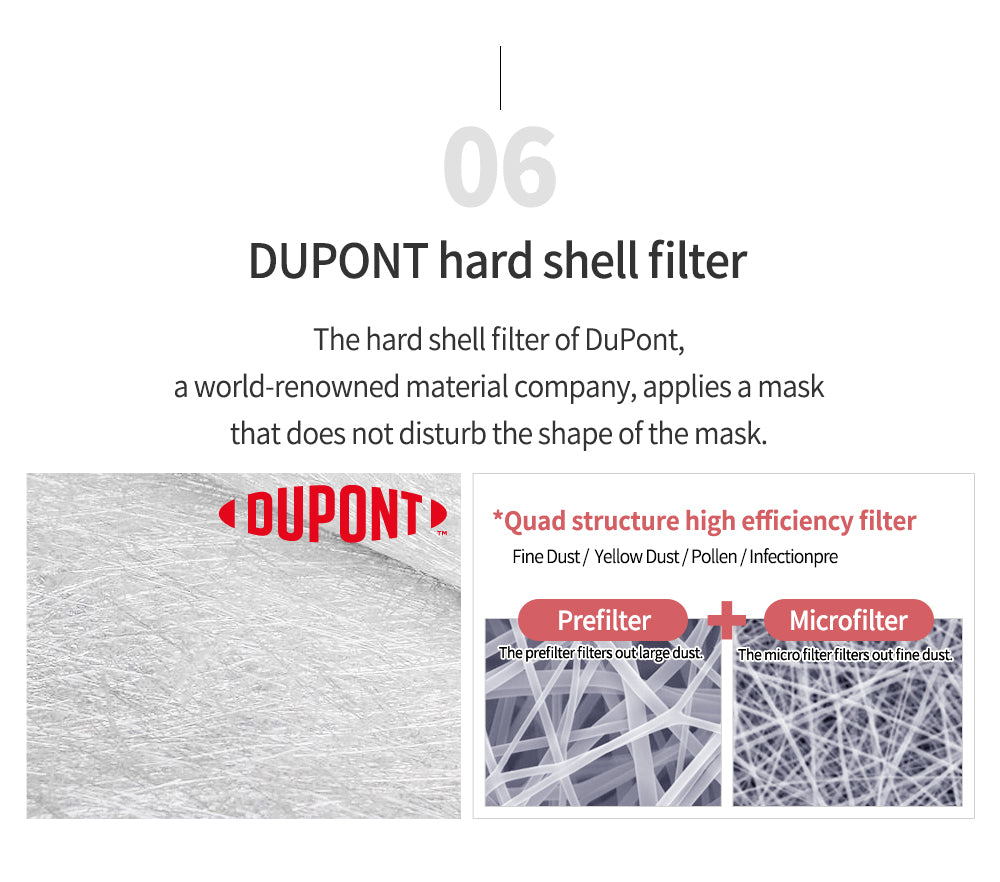 - Le filtre DuPont renommé avec sa structure tridimensionnelle permet une respiration facile et un port confortable.