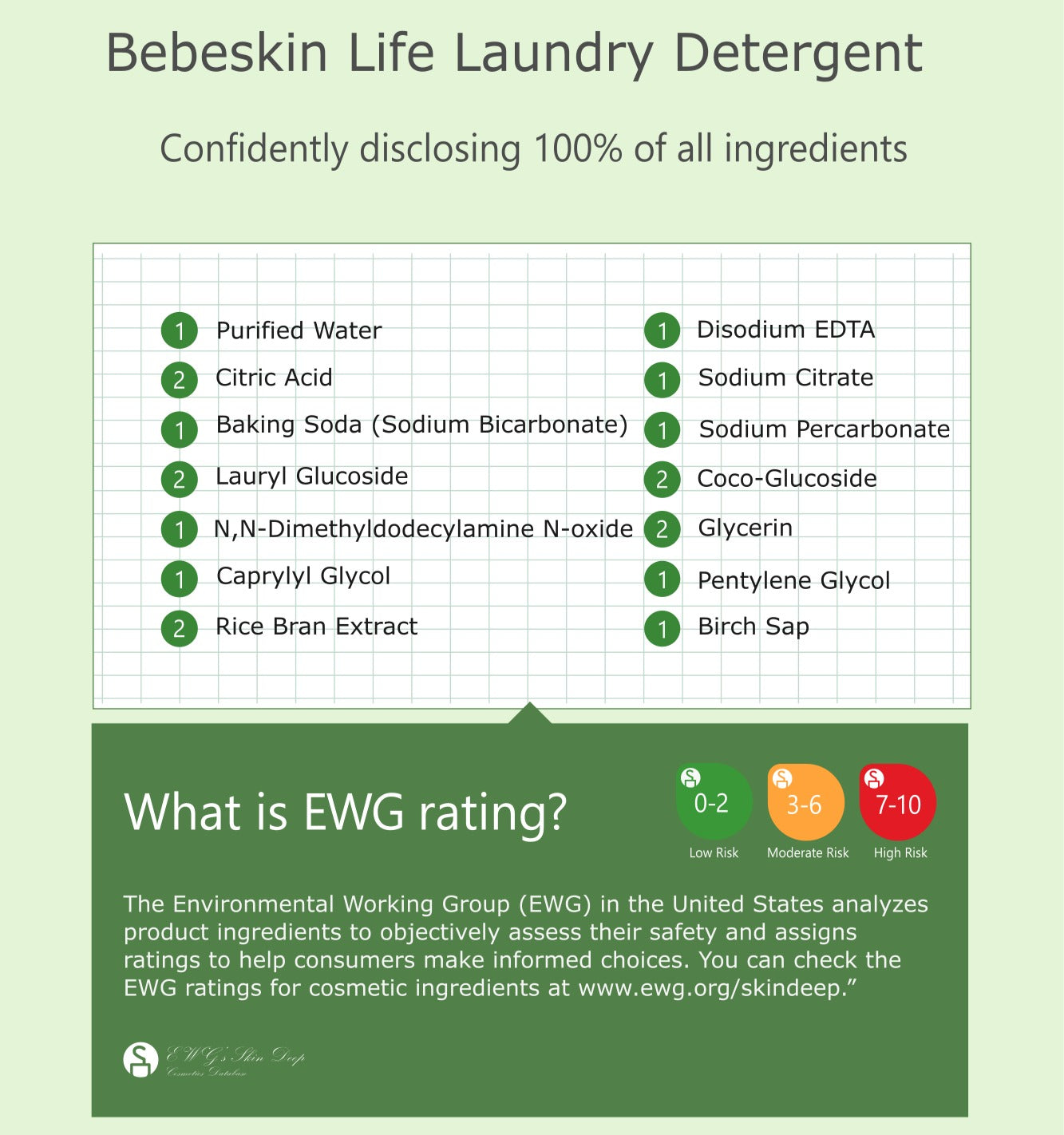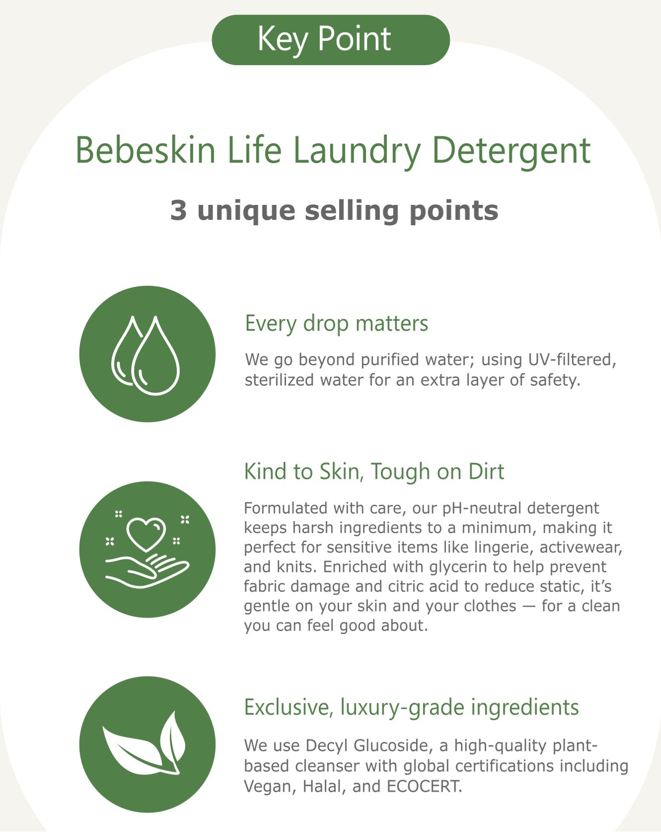 Bebeskin Life Detergent Unscent 2L [Vegan, Hypoallergenic] Family Detergent for Every Age