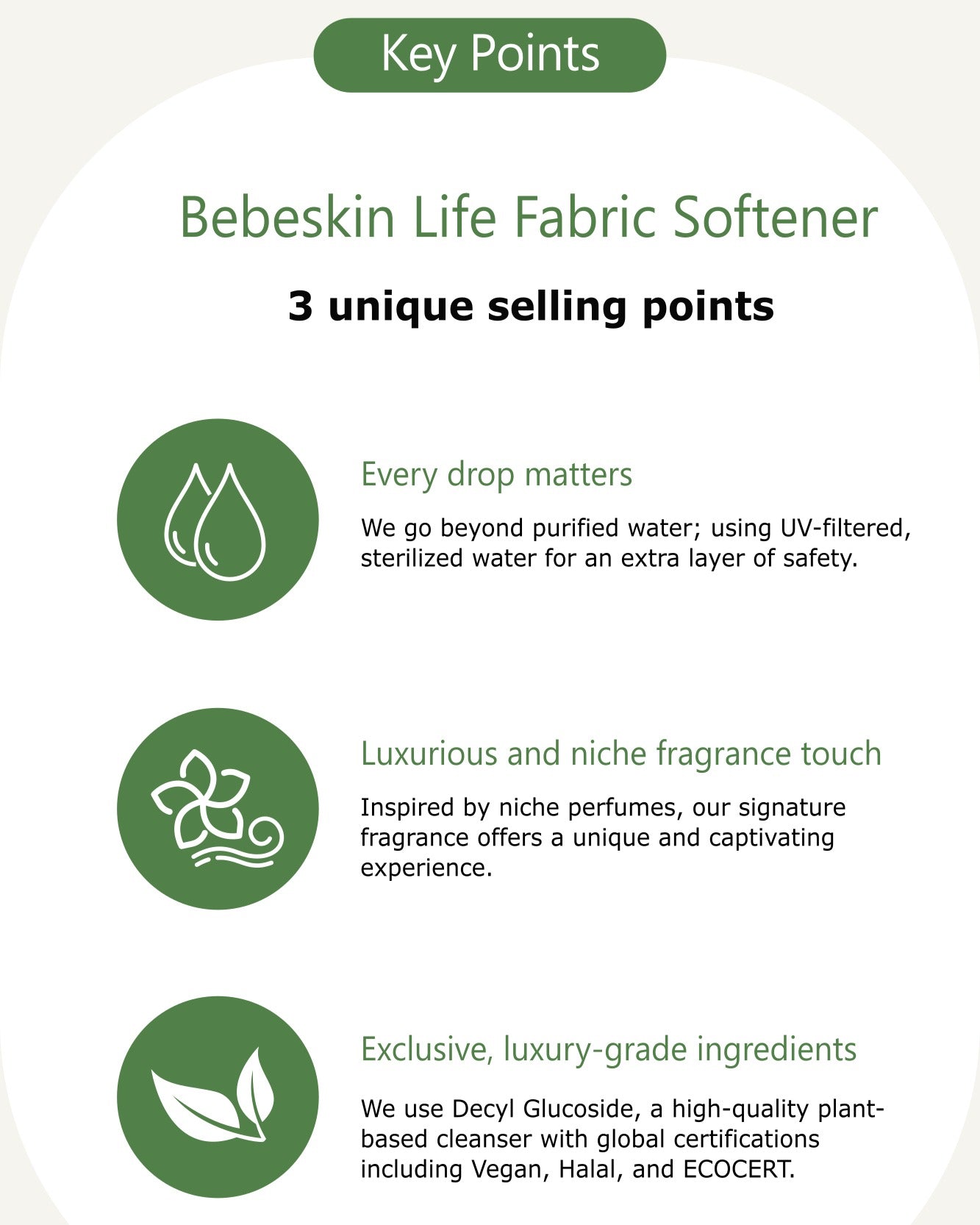 With purified water, UV filtered and sterilised for safety, this fabric softener meets ISO 22716 cosmetic GMP standards for premium quality.
