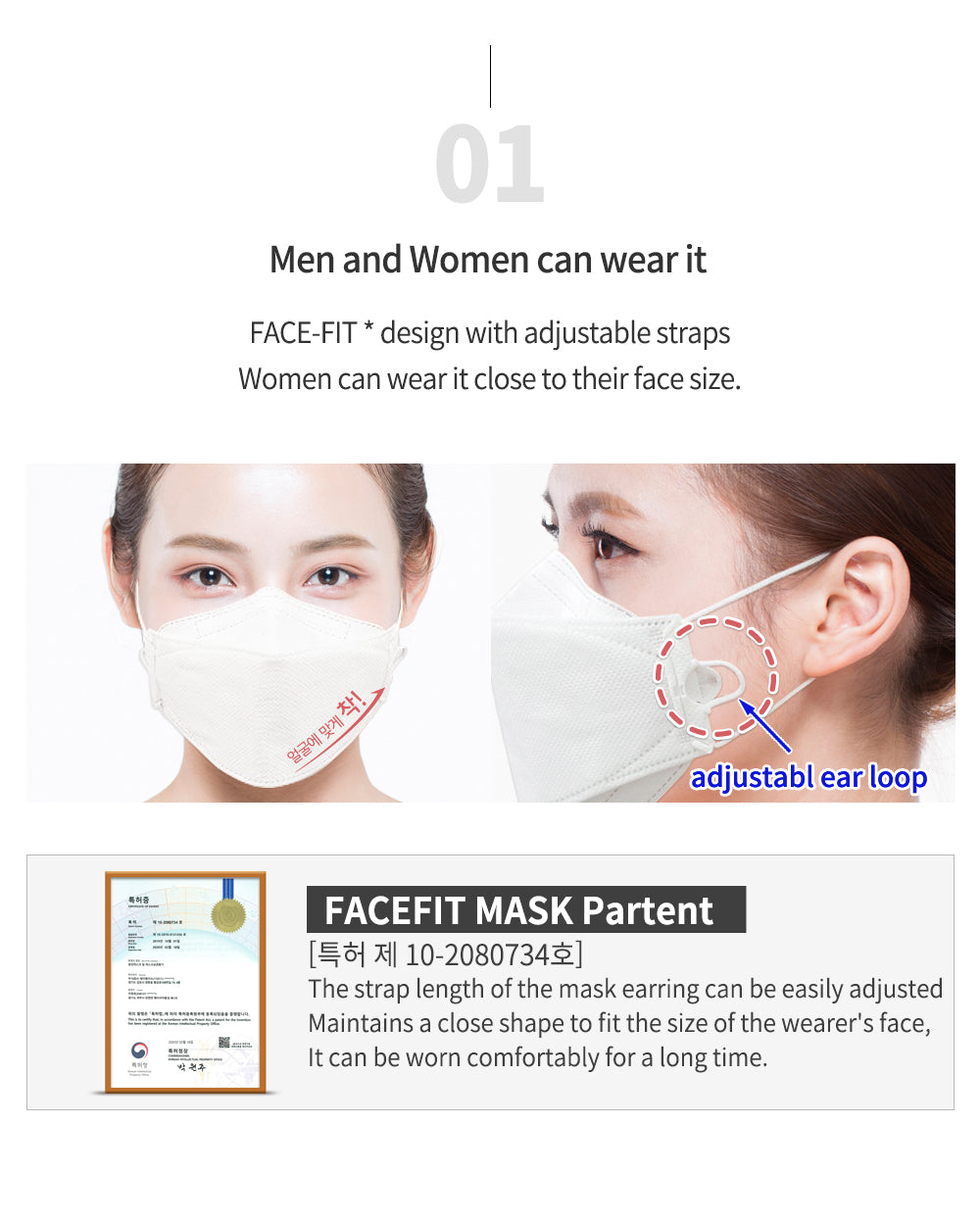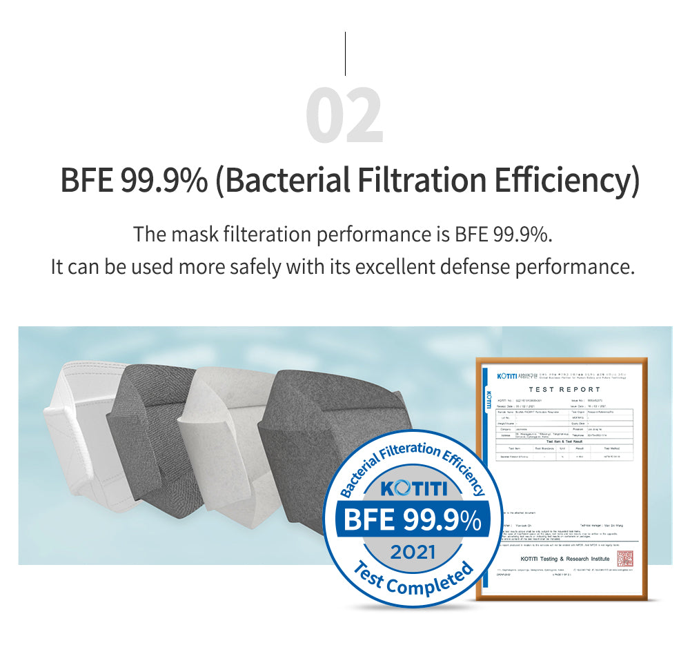 - BFE (Bacterial Filtration Efficiency) 99.9% tested by KOTITI, Korea