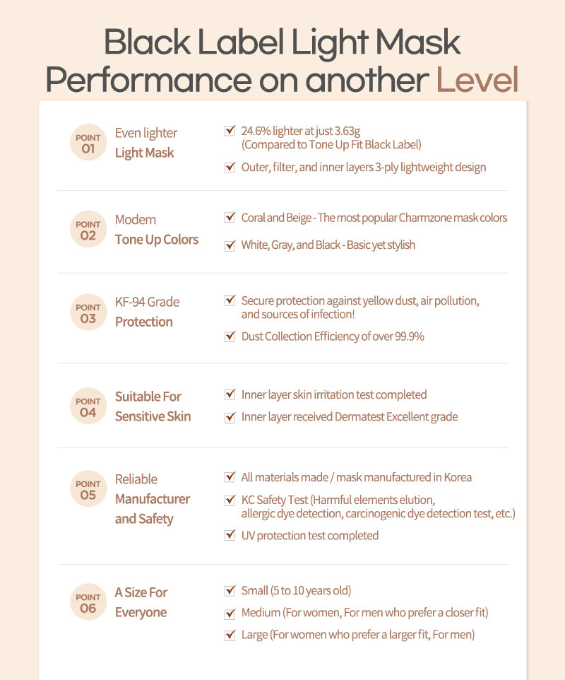 [25pcs] CHARMZONE 2D Tone Up Fit Black Label KF94 masks