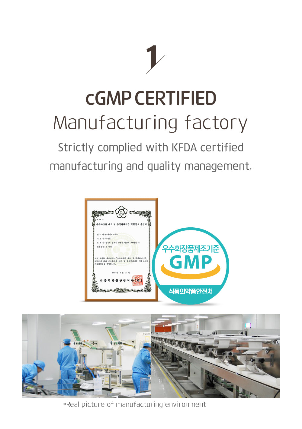 - cGMP (cosmetic Good Manufacturing Practice) certified manufacturing factory