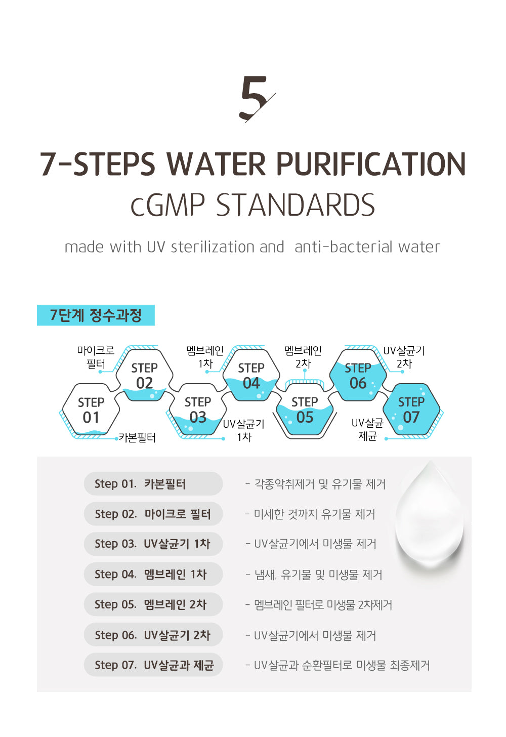 - UV sterilisation and anti bacterial water , 7 Steps water purification