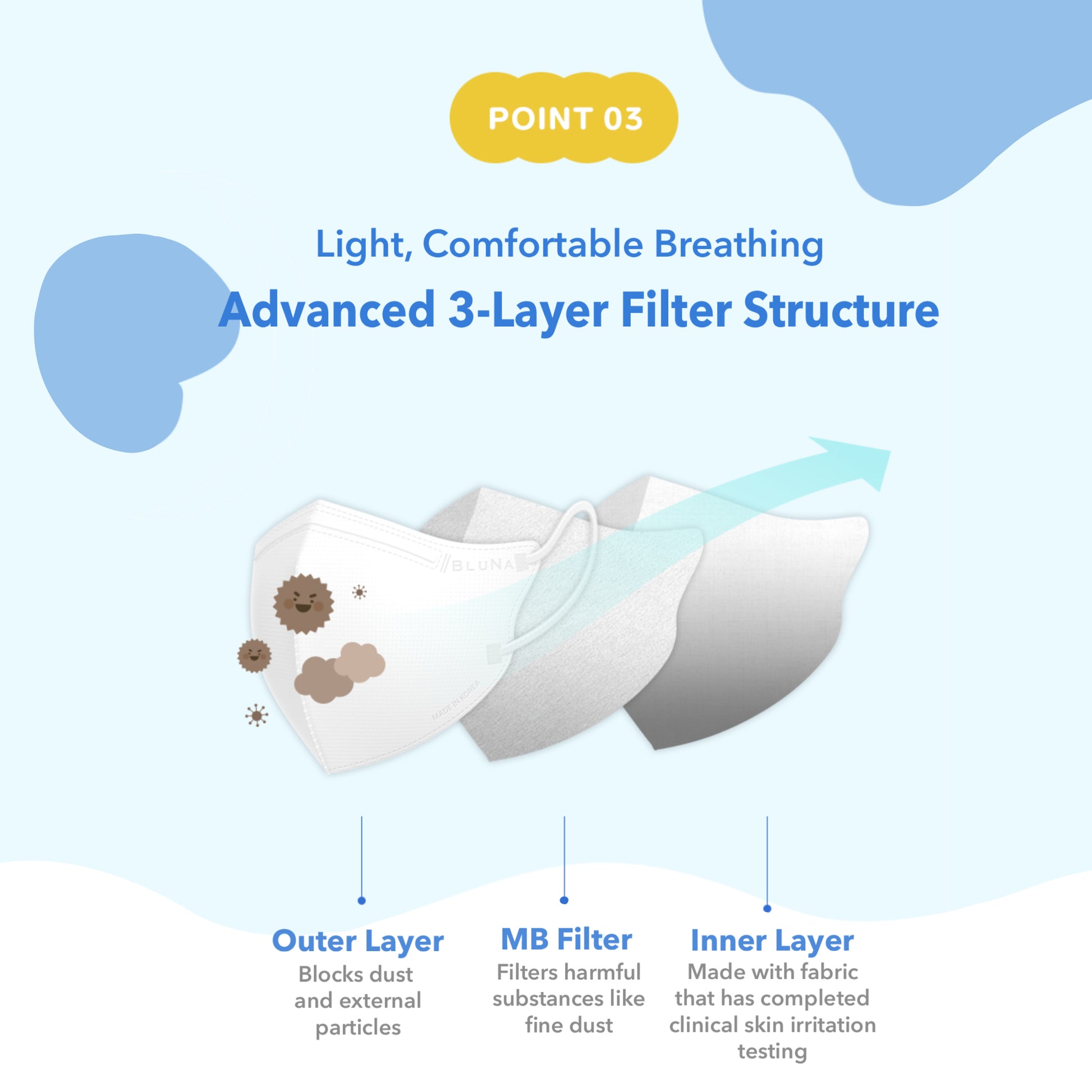 Engineered to block harmful substances such as fine dust and yellow dust, it provides reliable respiratory protection while remaining gentle enough for daily wear.